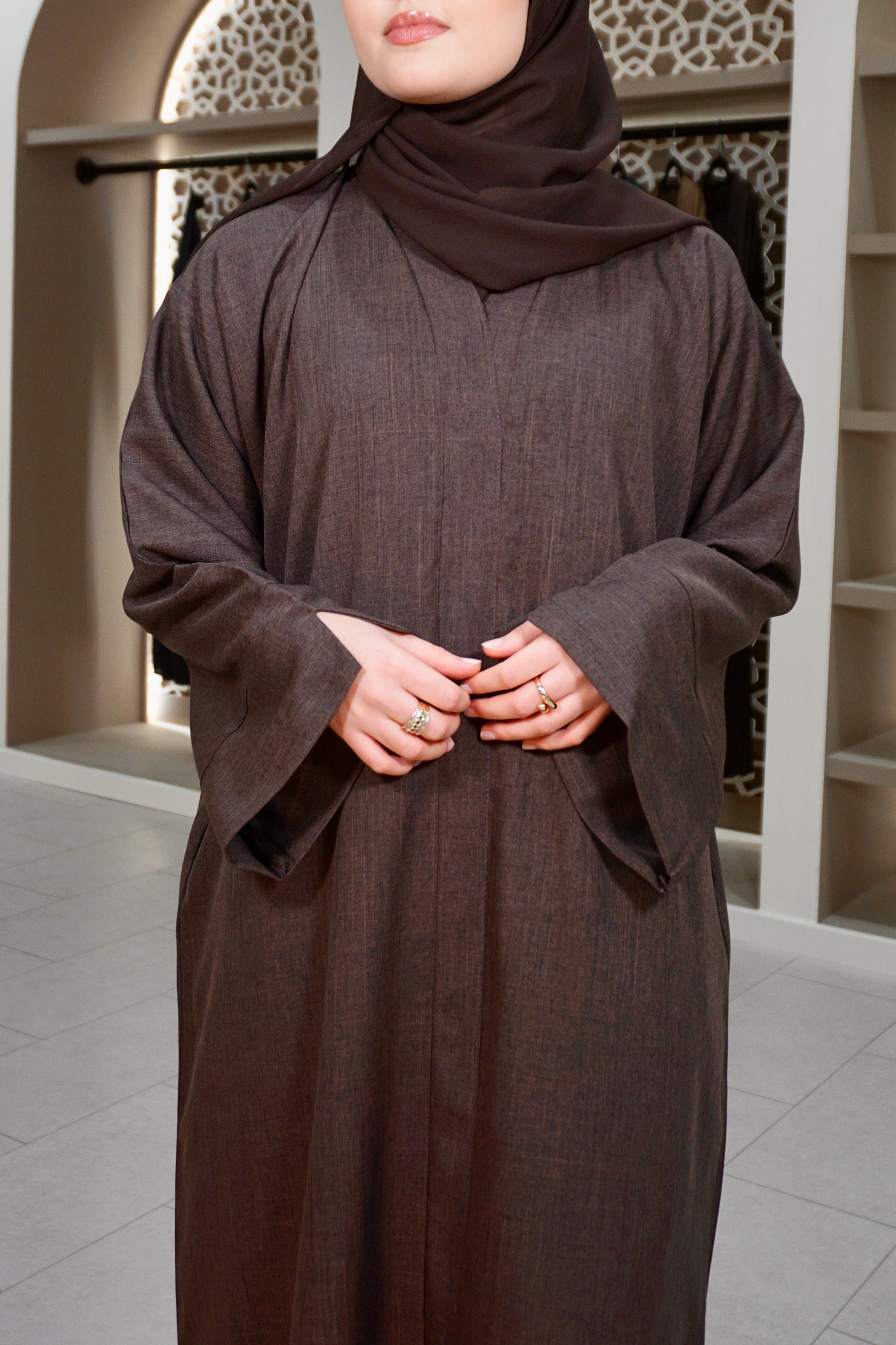 - Closed Linen Abaya, straight cut with split sleeve detail